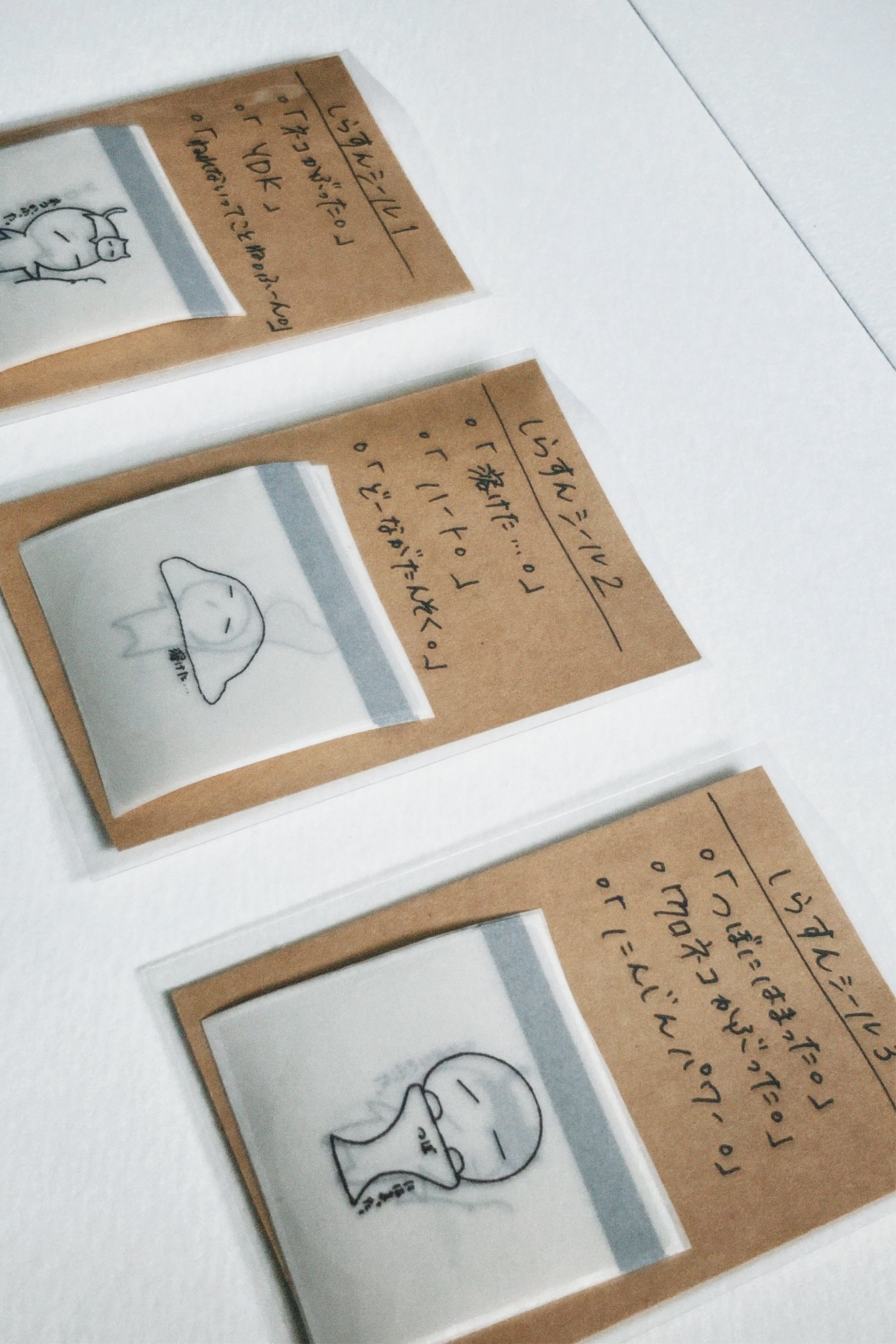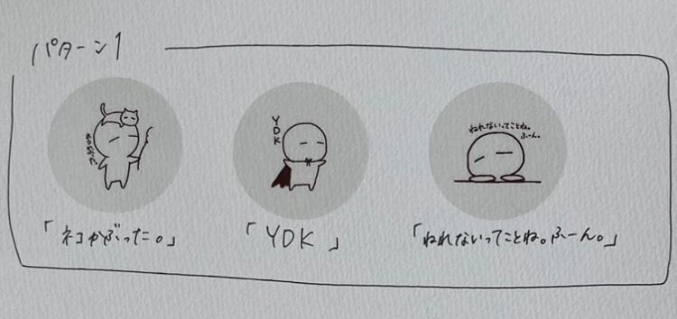 ○パターン1 「ネコかぶった。」 「YDK」 「ねれないってことね。ふーん。」 ○パターン2 「溶けた…」 「ハート。」 「どーながたんそく。」 ○パターン3 「つぼにはまった。」 「クロネコかぶった。」 「にんじんパワー。」 透明の丸シール! 直径3.9cm